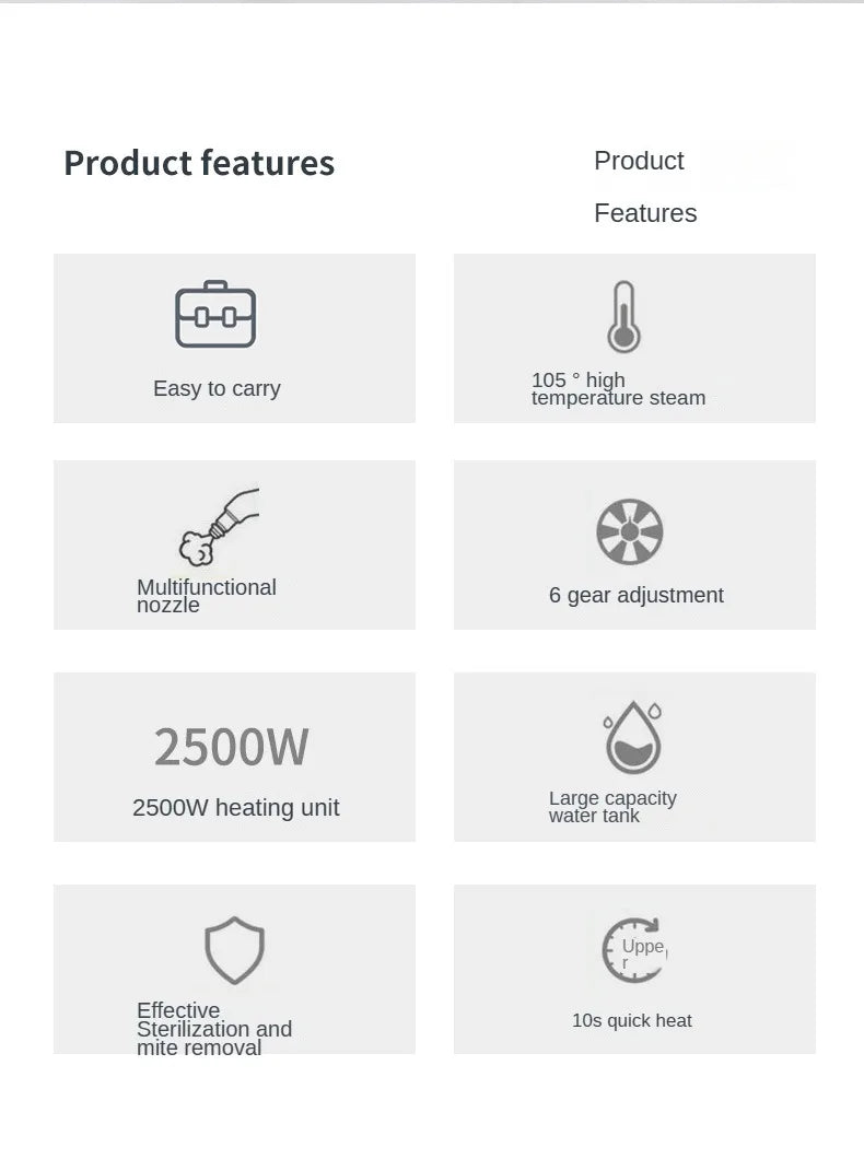 3.Lengthen the power cord and steam hose, single person operation is not laborious, can meet the cleaning needs.