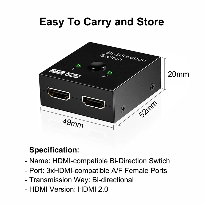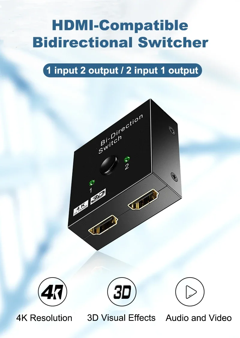 HDMI-compatible Switch Bi-Direction 2.0 Splitter 1x2/2x1 Adapter 2 in 1 out Converter for PS4 Pro/4/3 TV Box 4K Switcher